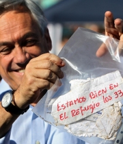 A su vez, Ojeda entregará el papel, que recorrió varios países de la mano de Piñera, al Museo Regional de Atacama durante la conmemoración del derrumbe que los dejó atrapados por cerca de dos meses.El aniversario, que se realizará bajo tres anillos de seguridad para evitar manifestaciones, contempla como acto principal una celebración ecuménica en la Capilla de la Candelaria donde se espera la asistencia de las máximas autoridades.