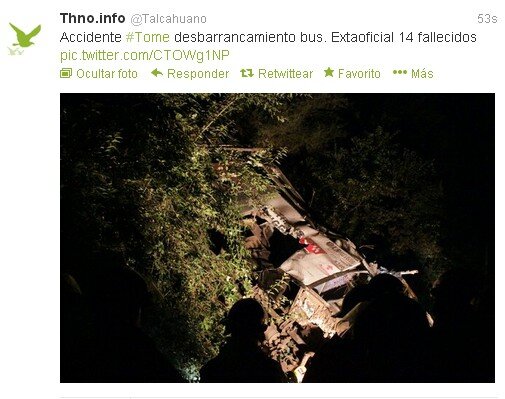 Según antecedentes preliminares un bus se habría desbarrancado 200 metros, dejando 15 fallecidos (uno de ellos lactante) y 19 lesionados. Así lo informó el Carabineros.