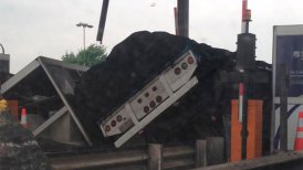 Un accidente se produjo este domingo en la Ruta 5 Norte luego de que el acoplado de un camión volcara sobre la caseta de peaje.